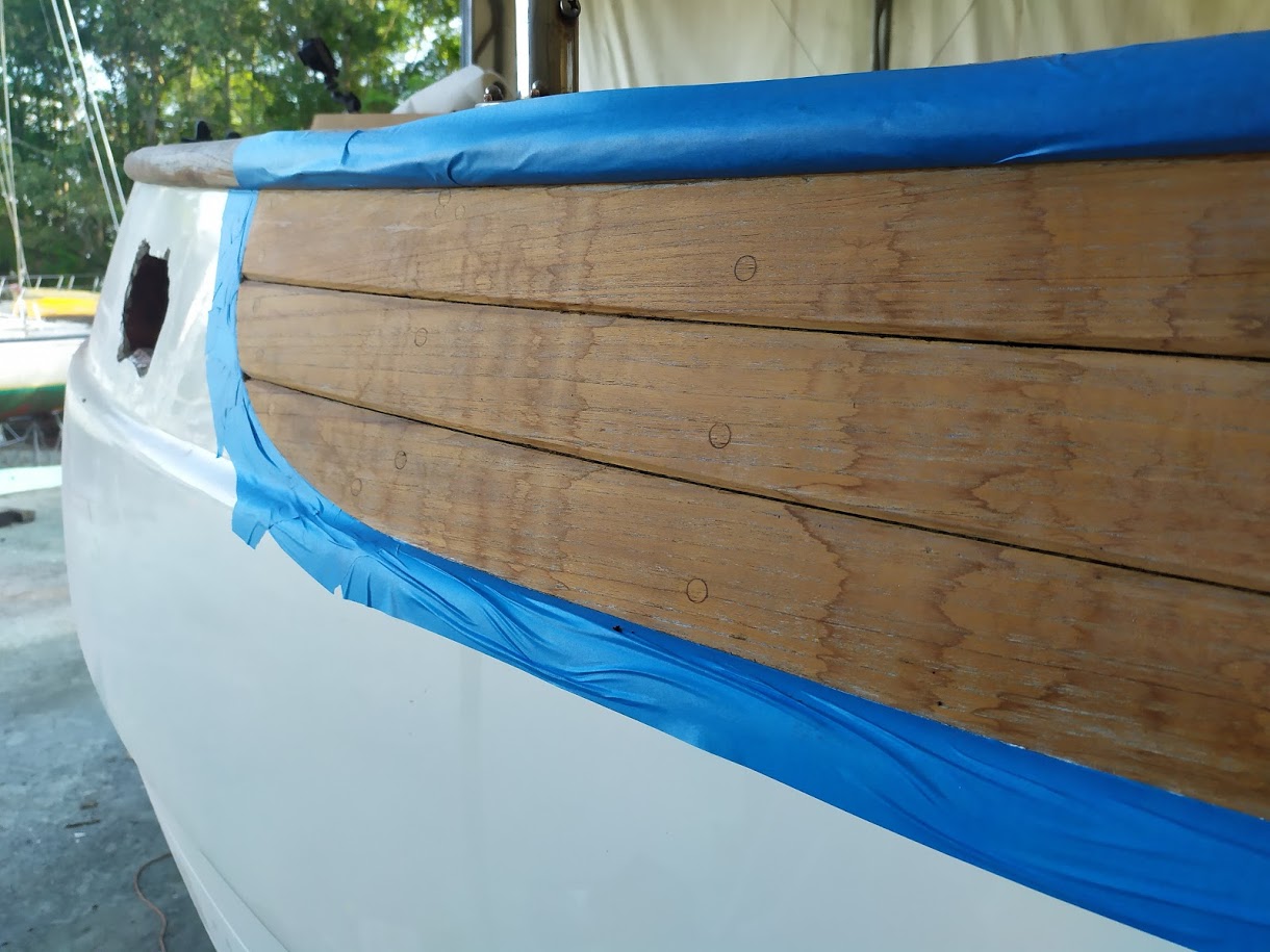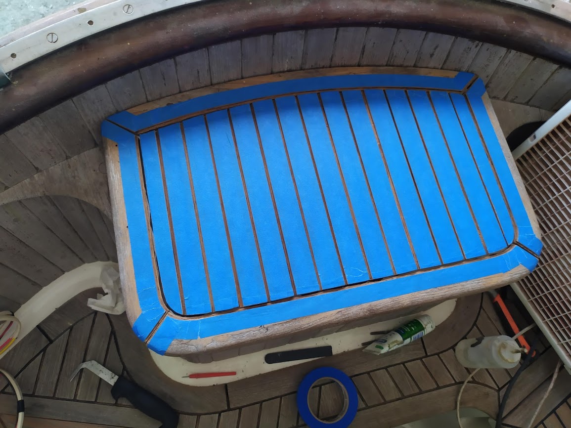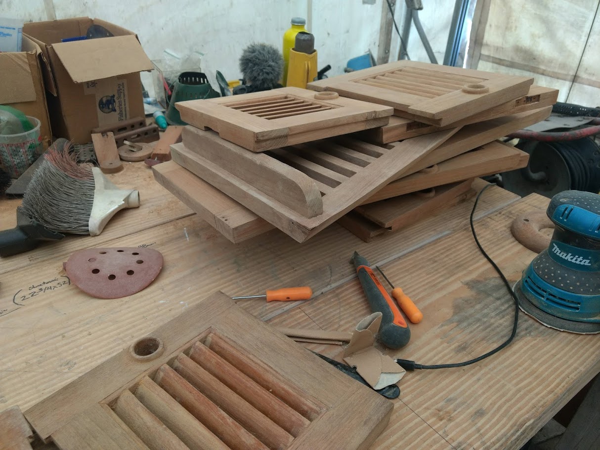 Being as distracted as I was, I kept to the projects that did not require all my attention. I prepped the teak on the bulwarks, caught up on blog posts and continued the never ending battle with the teak louvers.