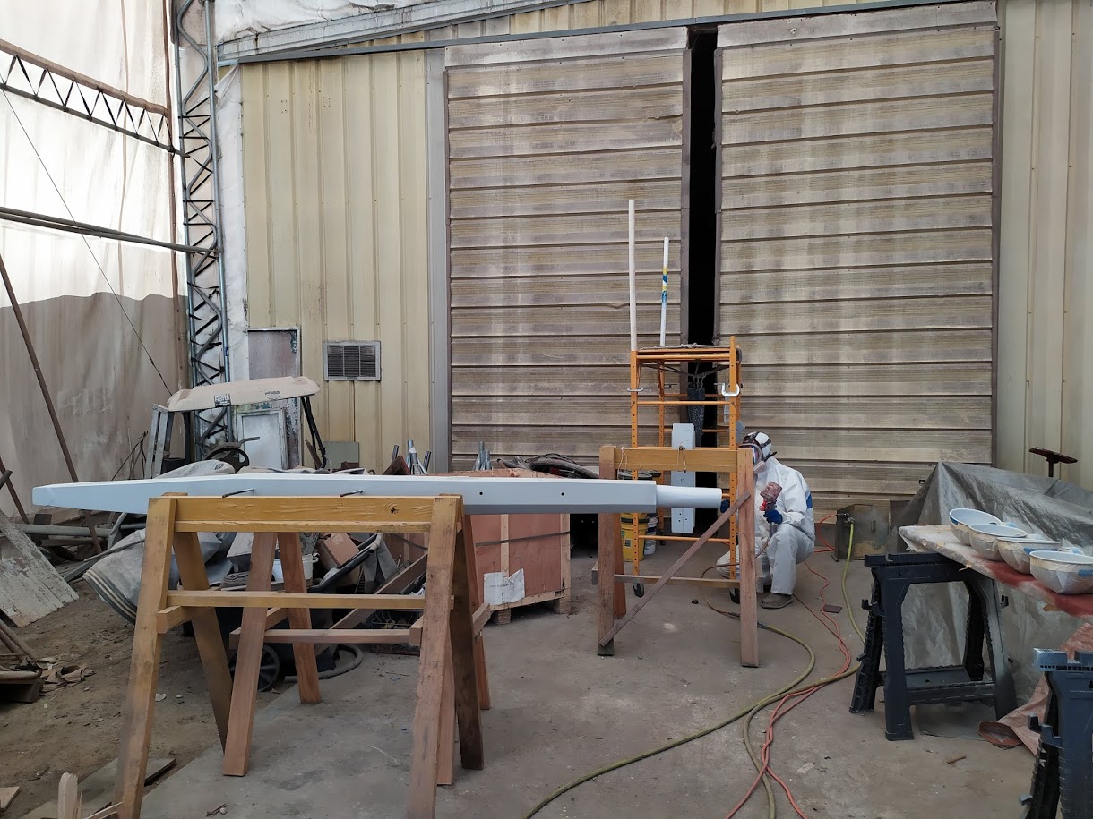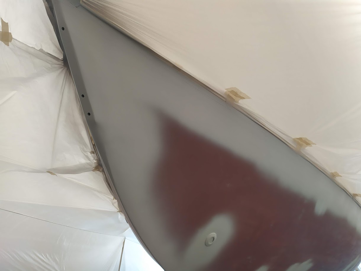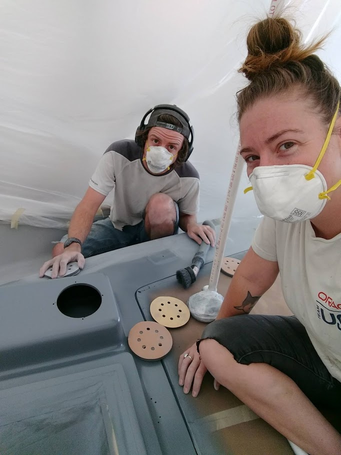 Only 2 days later, with the entire tent covered in epoxy sanding dust, (even with using our vacuum sander) the decks were flat, smooth and ready for paint.
