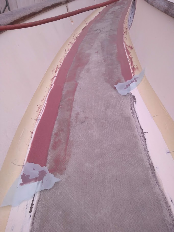 It is a good thing Jon is damn good with a grinder cause he was able to keep the decks level which would help with the next steps.  Remember the deeper sections I mentioned where Jon used the router to remove the bad glass, well now we had to build those sections back up and make them level before we could run the 2 layers of 1708 along the entire decks.