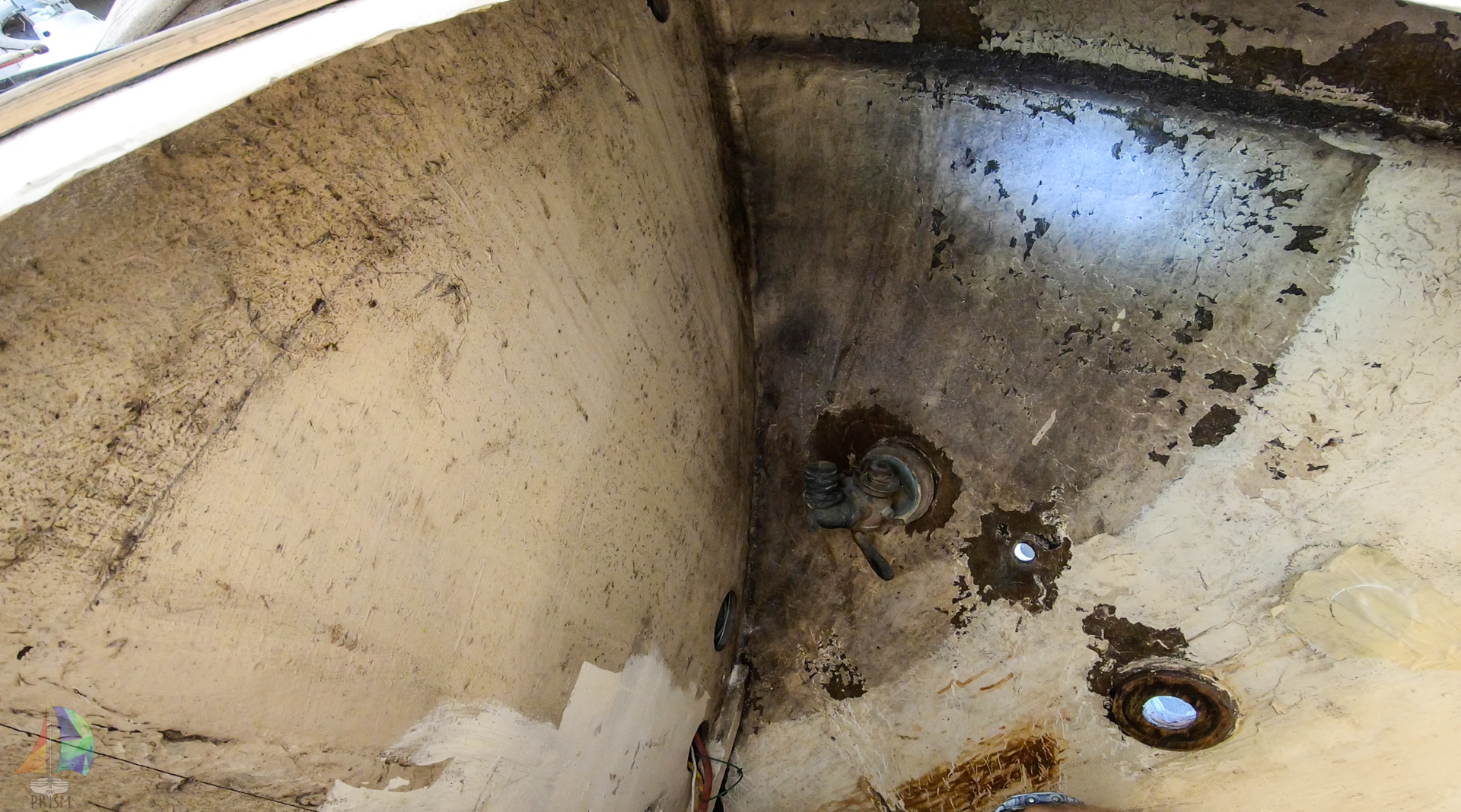 Aboard Prism all our tanks are glassed into the keel, including the 25 gallon holding tank. This tank has served us well, we have never had any stink or issues with it,besides the fact we could not dump it while out to sea. We wanted a system which was easier to flush out and keep an eye on. So we have decided to install a new tank in a dead space in our anchor locker which will be gravity fed.