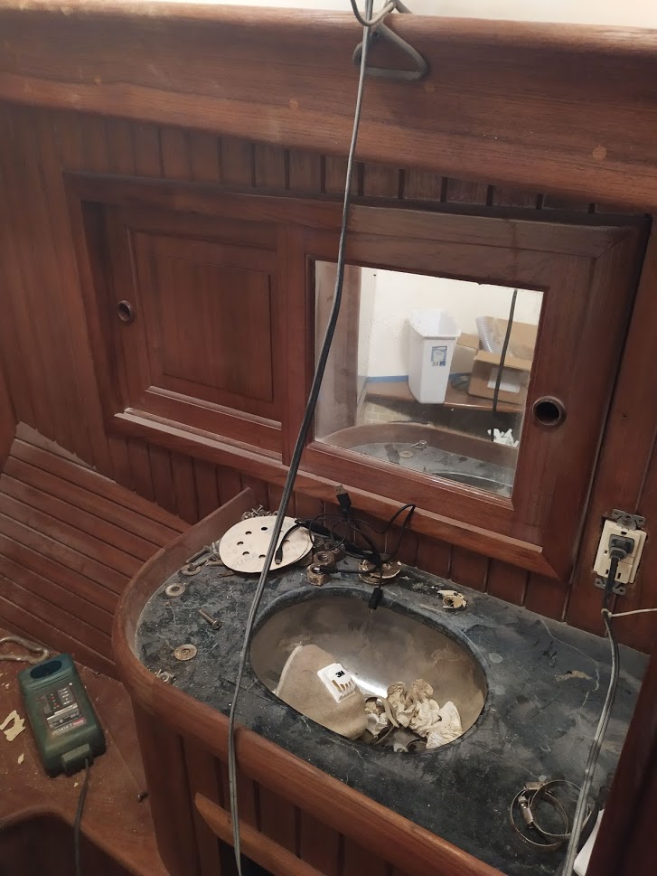 We had finished installing our new single sink before we left, but now we have started to install the faucets and other living amenities. We are ready to move back  aboard!! Yes it is still rough, and we do not have a working fridge, or a real stove, or a toilet, or windows, but we have a nice new bed and we are going to make this work! Cause we have to.
