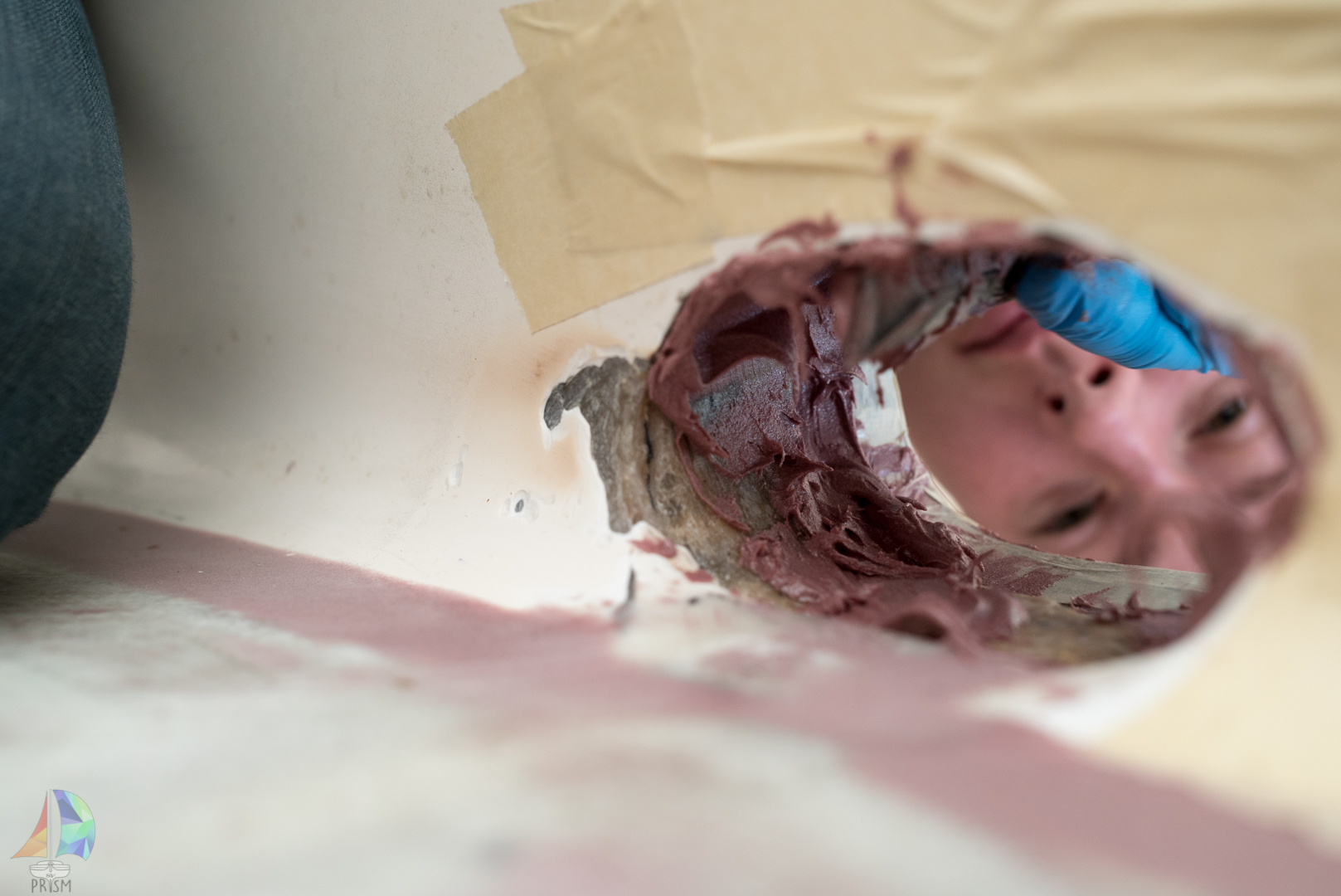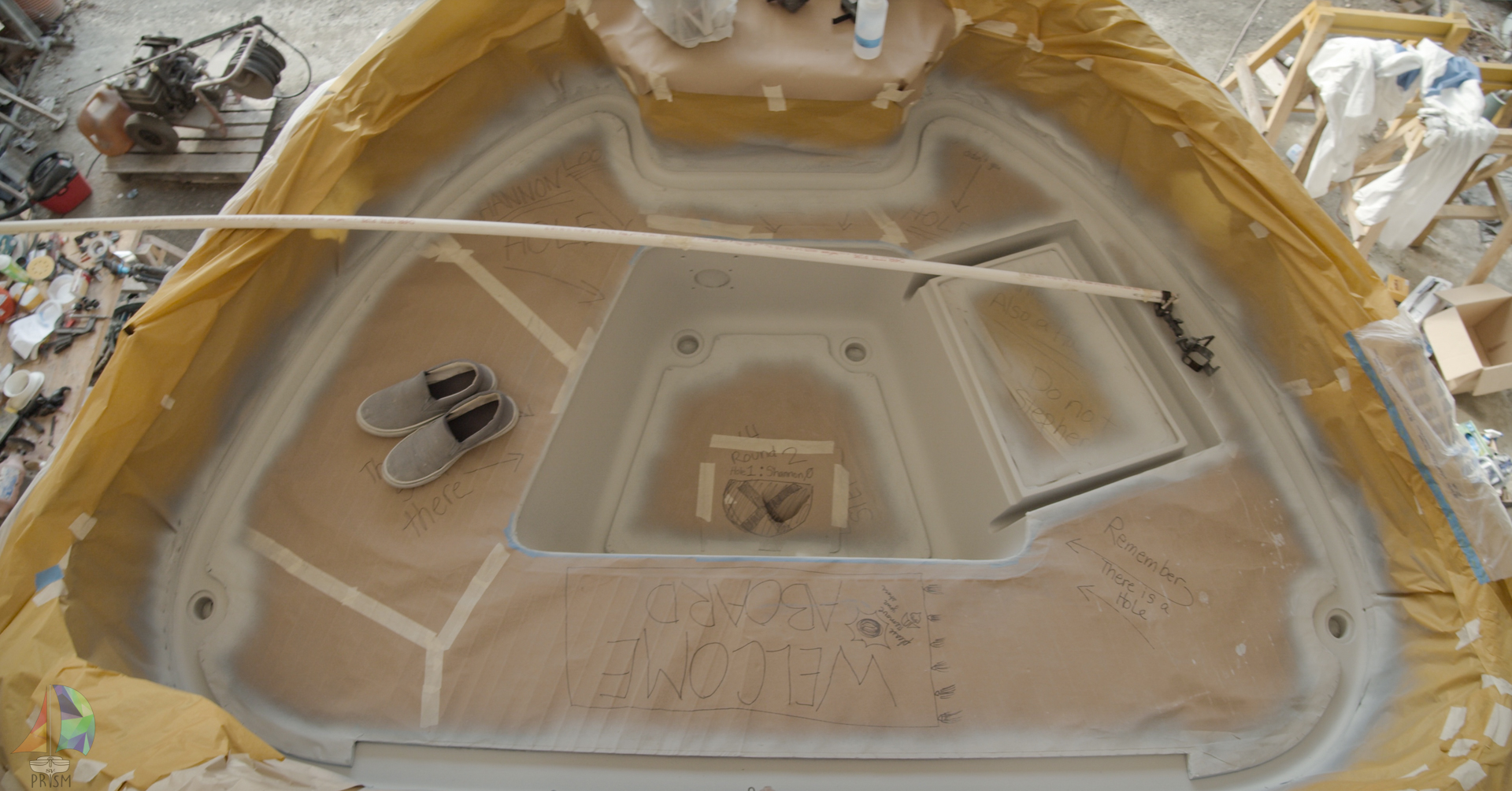 Before we could start, we had to build a bubble once again, this time above Prism. We were in the middle of winter and the temps were in the 40’s and dropping to the 20’s at night. So a bubble with a heater needed to be set up so the epoxy could cure.