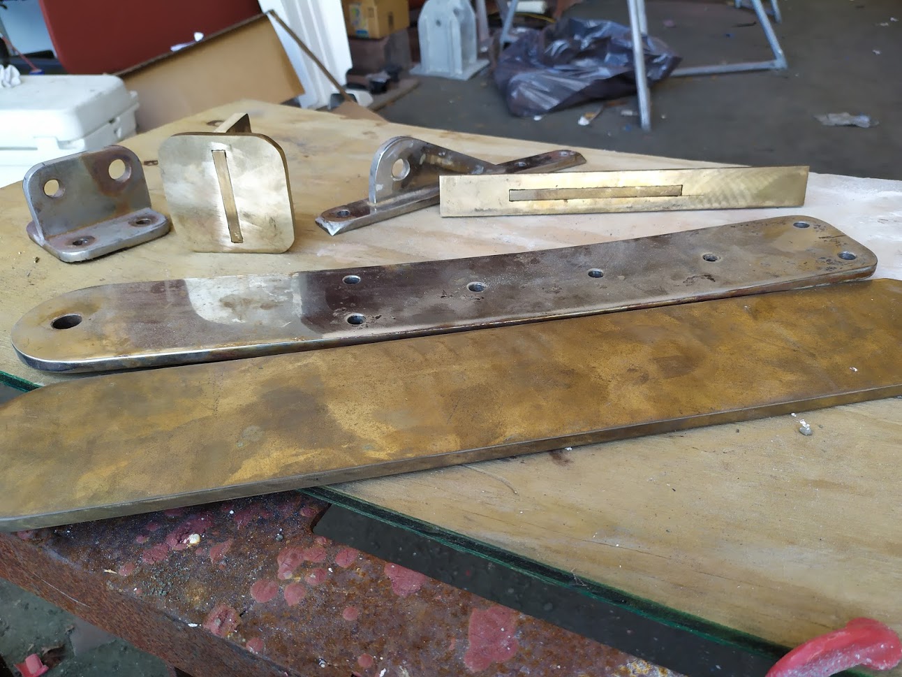 cutting the large bronze strike plate to make our own