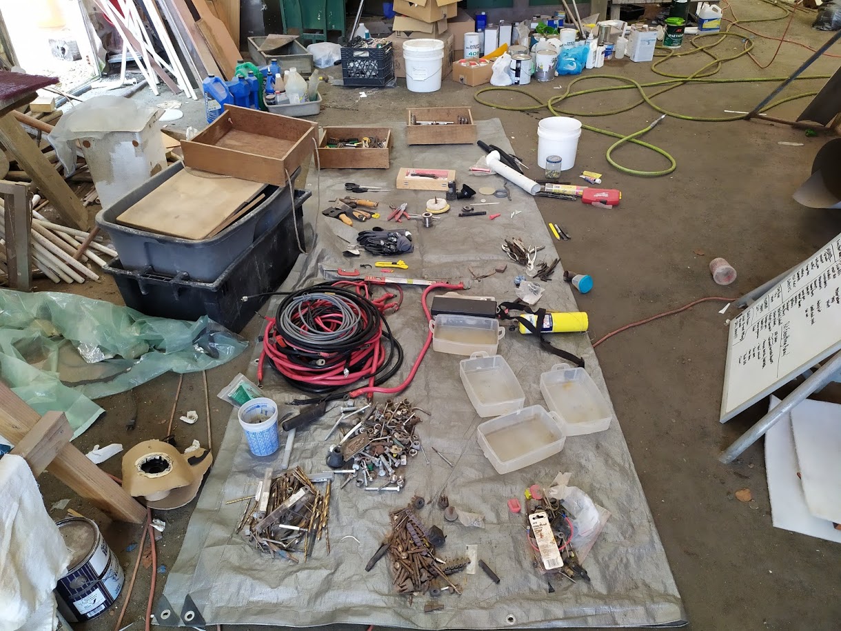Where do we start?” I said as I looked around at all the projects and stuff we had covering every inch of the tent. Yes the topside paint was done and the varnish on the inside was almost done, but there was still so much more.