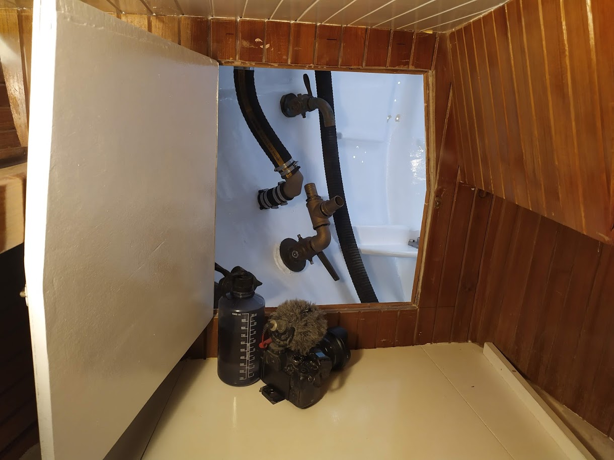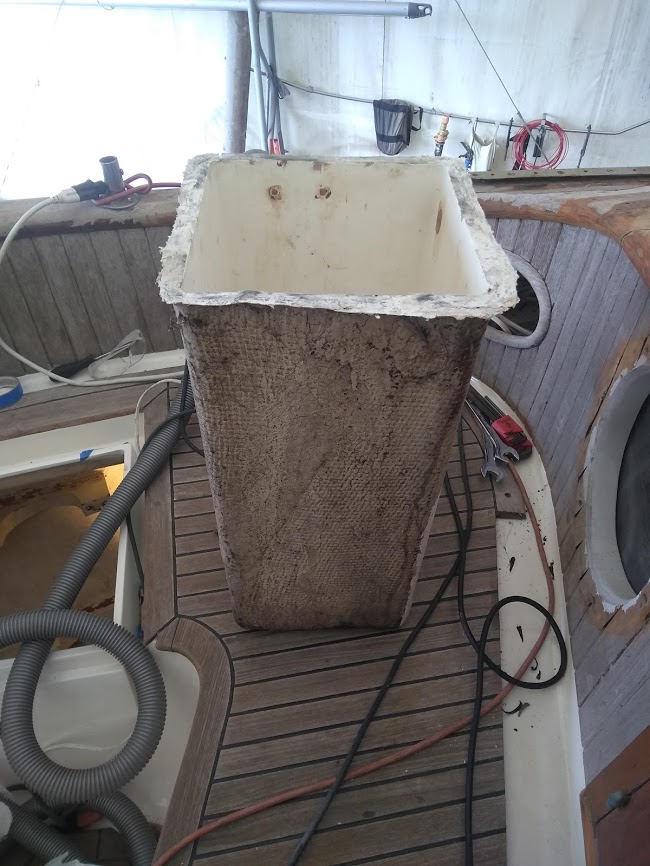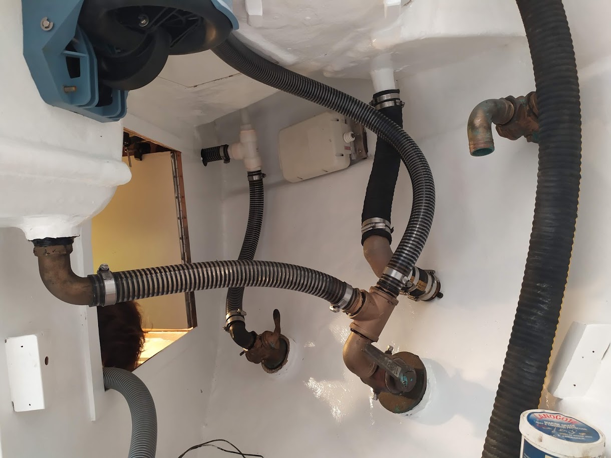 Along with the new tank, we also have plumbed our sink drain to feed the grey water into the head to act as a fresh water head. We no longer have the head set up to suck sea water in to flush the bowl. We hope that this will limit the amount of times we take apart our head for general maintenance. Using fresh water will reduced the amount of calcium build up and scaling in the plumbing as well.