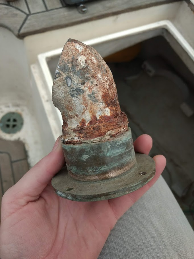Before stepping the mast we wanted to check on the inner parts of our Hi-Mod fittings which we installed back in 2013. We needed to use heat in order to get the fittings part, but once we were inside everything looked just as it should. There was virtually zero rust and the cones were in perfect shape. When we put them back together, this time around we used anti-seize on the wire. We did this in hopes that next time we inspect the fittings they come off without the need for heat.