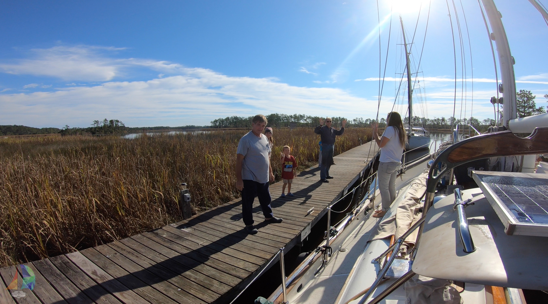 waving goodbye to our friends as we pushed off from the dock