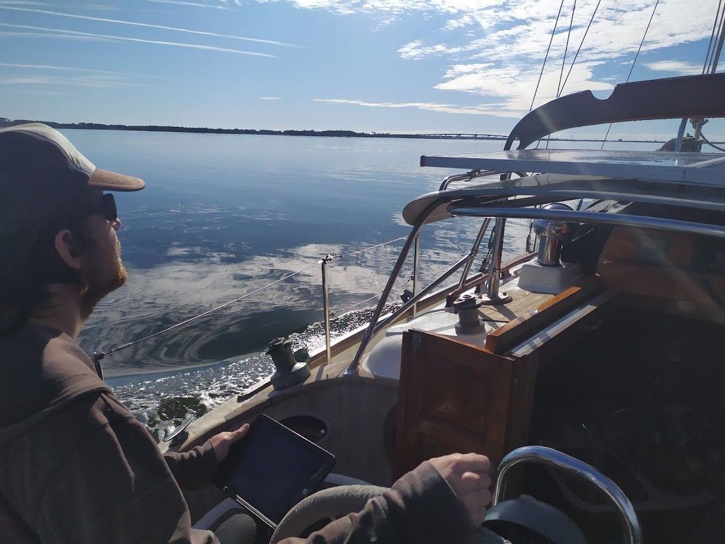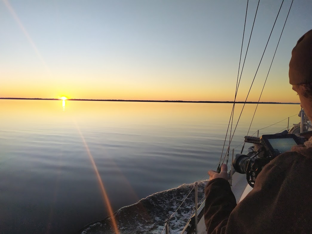 It felt so good to be actually sailing, and not only sailing, but moving fast enough that if we pushed it we could make the Charleston inlet by sundown. Meaning we would not have to slow down and wait till the next morning to go in. However around 2pm the wind started to get a little light, so we decided to motor-sail to keep up our speed. It was a good thing we did because as we rounded the channel marker guiding the entrance into Charleston as the sun was just about to set.