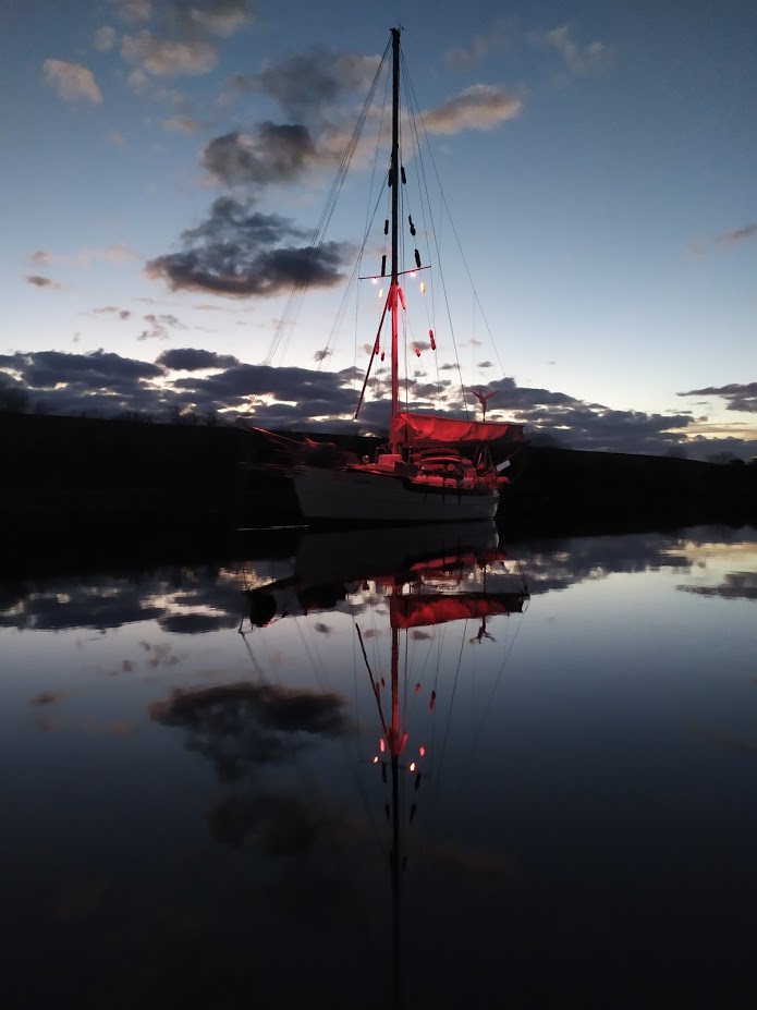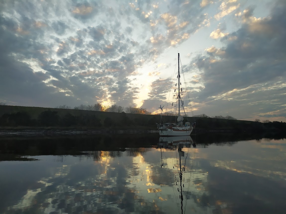 The North River is quite a nice place to spend time if you like seclusion and boatyards. There are many places to anchor and is really protected. We enjoyed a lot of beautiful sunsets, rain, sun, and a lot of bites from no-see-ums.  The water is too murky to make water, so we would fill up the jerry cans at the yard and ferry them back to Prism.  The dinghy ride from Prism to the yard was about 5 minutes.