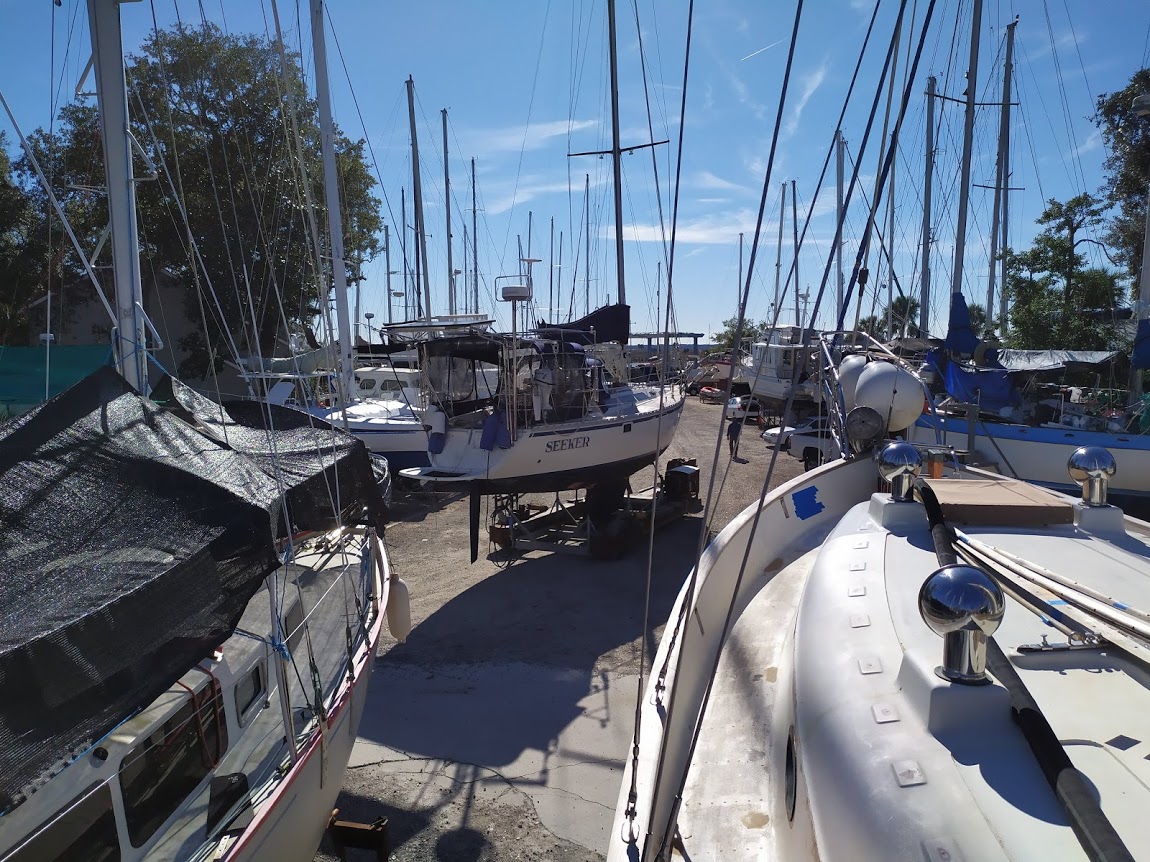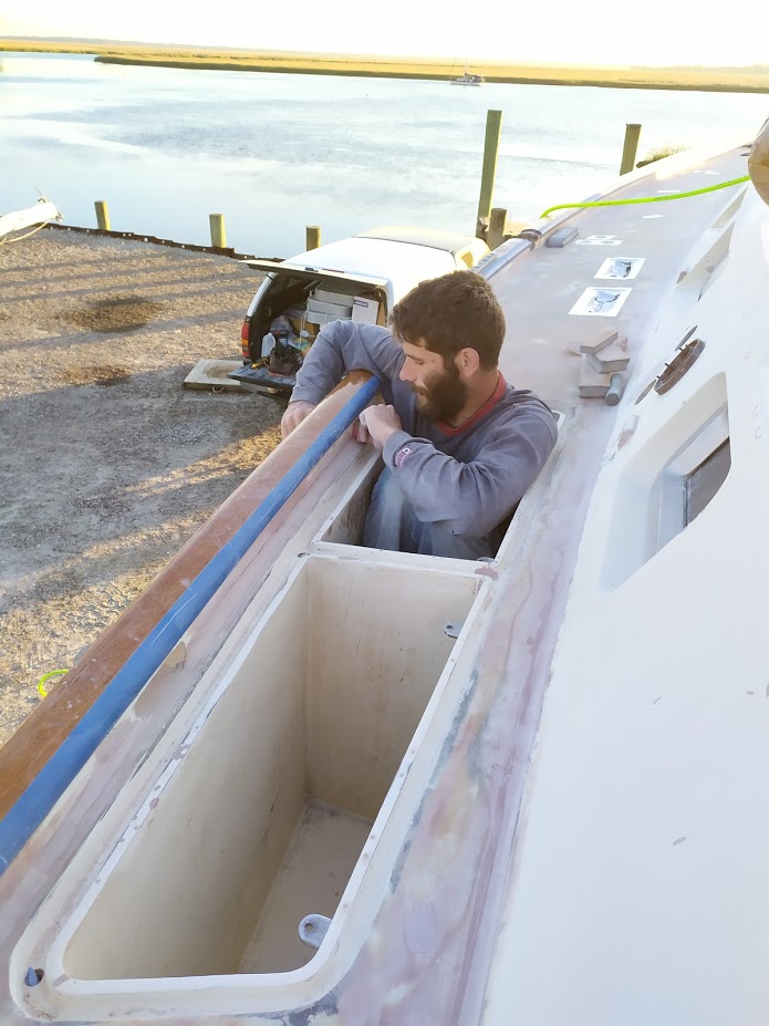 While we were working on Fin, a friend and another HC33 owner, Bill called us up with a proposition. His boat, Dragonquest, needs some TLC and would like for Jon and I to do the work. We said we would, only if he brought DQ down to Hurricane Boatyard in North Carolina. Yes, to the same place Jon and I sailed away from only 4 months earlier. After working out in the open in GA, we remembered how lucky we were to have had worked on Prism in that tent.  We planned on both boats making it to NC by the beginning of March.