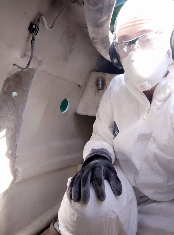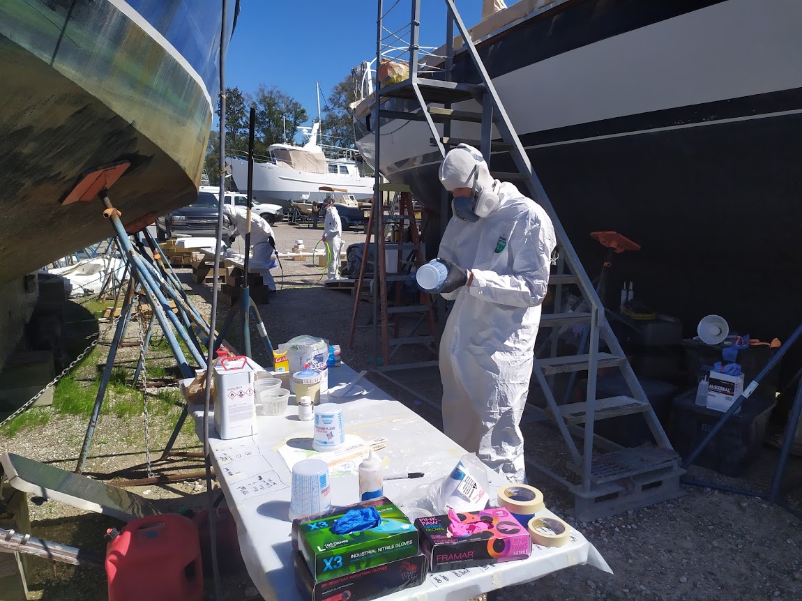 Considering we had just turned down one job, and still needed to make money, we were all ears. Luckily for both parties involved, Christina and Derke’s project was 100% in Jon and I’s field. Over the last few months, they had done some core replacement on their decks, and were now in the sanding, filling and fairing stage. We gladly accepted the work after a quick walkthrough and rundown of what they wanted. It did not take long for Jon to persuade our new found friends to spray rather than roll on their new topcoat.