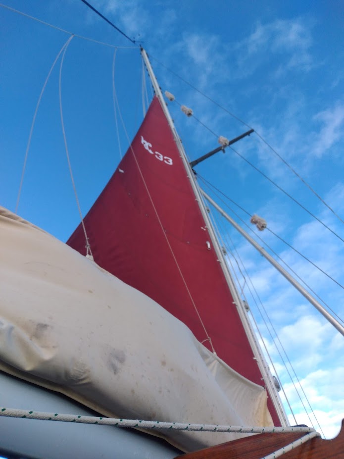 As we approached the river leading to St. Marys, we prepped Prism to take down the sails. Both Jon and I felt it would be smarter to motor upriver this time around. We were not sure what the river was going to be like, nor did we know how deep it was going to be. At this point, I turned on the engine, took the helm while Jon went forward to release the halyards. When I came about into the wind, Jon released the staysail, which fluttered down onto the deck, then he went for the main. Prism’s bow started to be blown down, which would make it hard for the mainsails cars to slide down the track. I put her in gear and tried to turn her nose back into the wind.