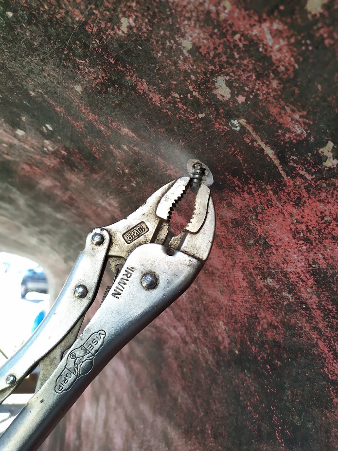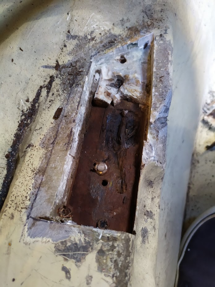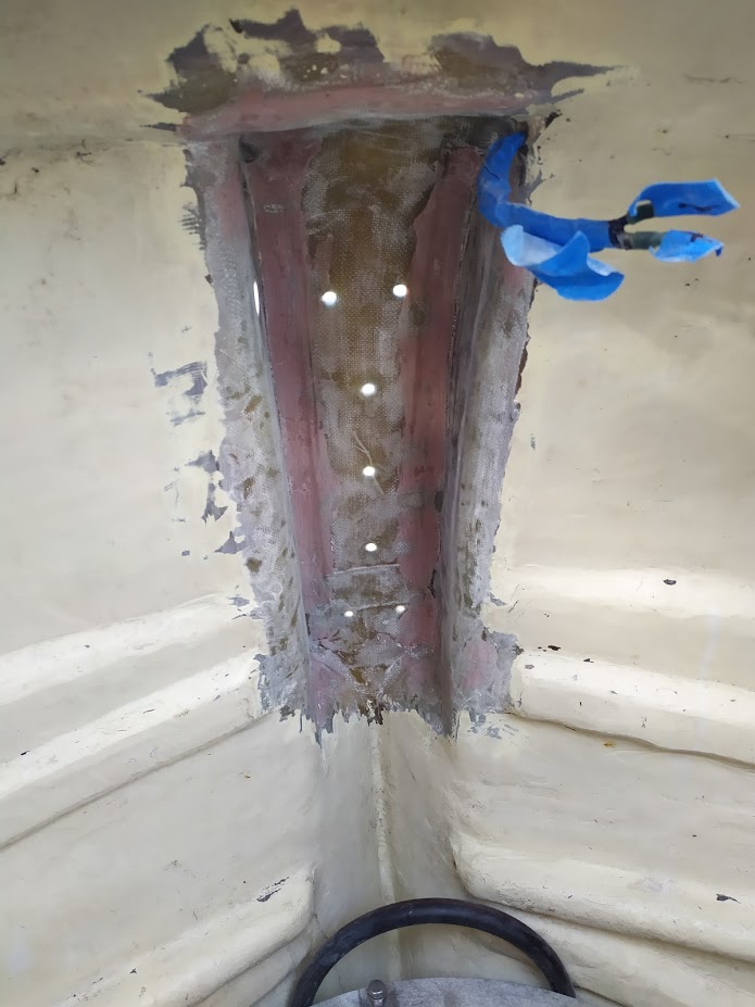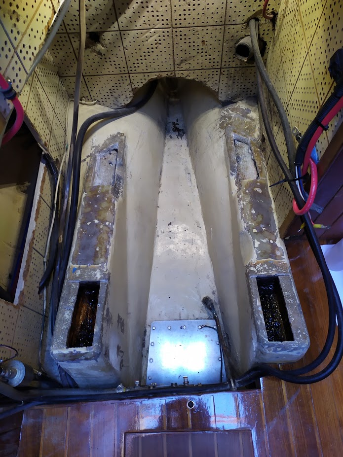 One of the lag bolts from the engine bed was too long, and was actually penetrating the hull!