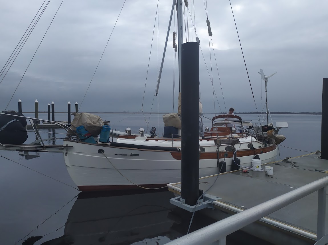 The next morning we were woken by a very apologetic police officer. He told us there was a complaint that we had been at the dock too long, and that we needed to leave. As we were prepping to cast off, the mayor’s brother stopped by to ask how we were liking the docks, and if there was something the city could do to improve the experience. After a short talk, we told him that all cruisers are looking for easier access to water, hot showers, and laundry. Once our water tanks were full, we were ready to leave. Our new destination would be up North River to St. Marys Boat Services.