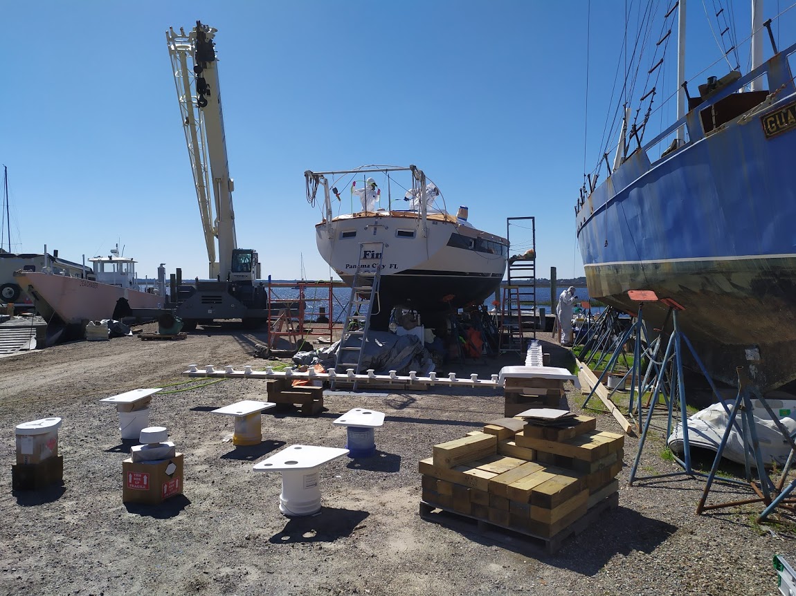 We had decided to pull into St. Marys mostly because of a fellow HC33 owner, Brandon. Over the years, we have talked with Brandon online about HCs and their needed maintenance. He was in the middle of his own refit, including new paint, adding external chainplates, and more. If we stopped in St. Marys, he wanted us to help with the external chainplate project. So here we were and ready to work.