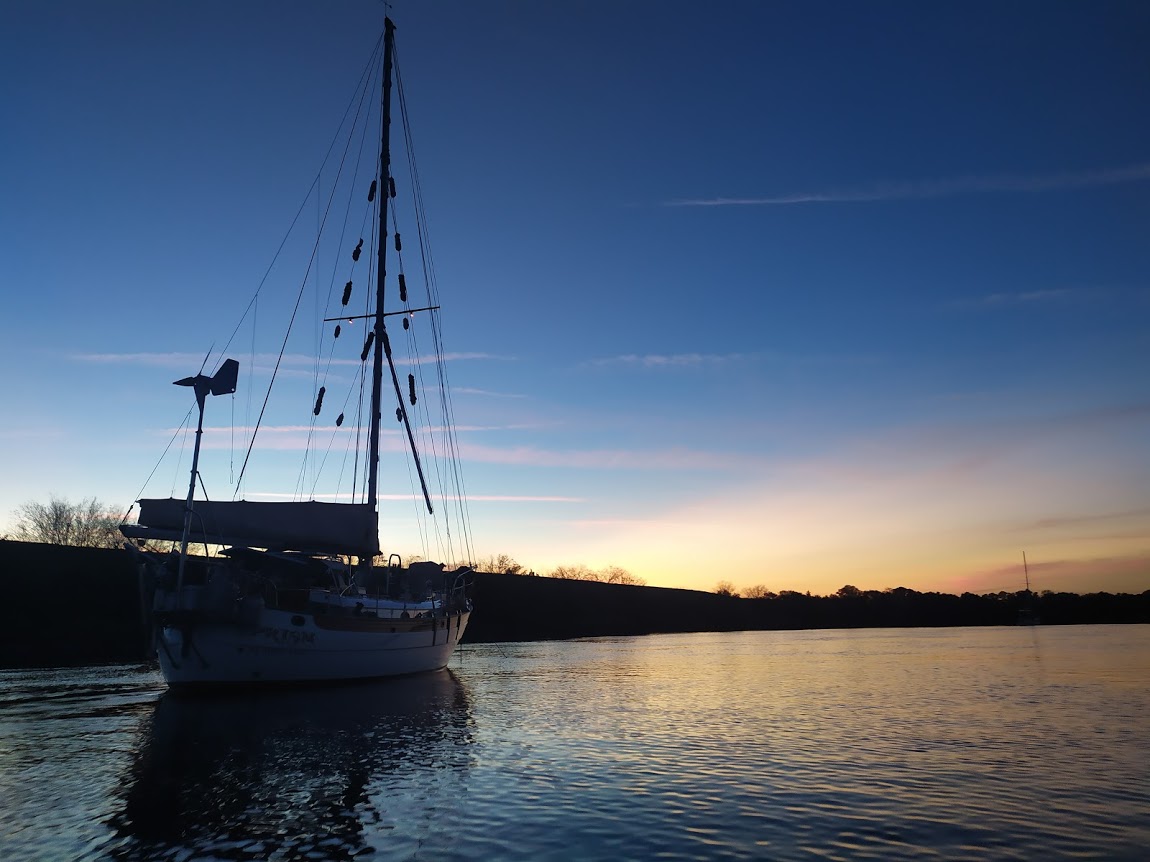 The North River is quite a nice place to spend time if you like seclusion and boatyards. There are many places to anchor and is really protected. We enjoyed a lot of beautiful sunsets, rain, sun, and a lot of bites from no-see-ums.  The water is too murky to make water, so we would fill up the jerry cans at the yard and ferry them back to Prism.  The dinghy ride from Prism to the yard was about 5 minutes.