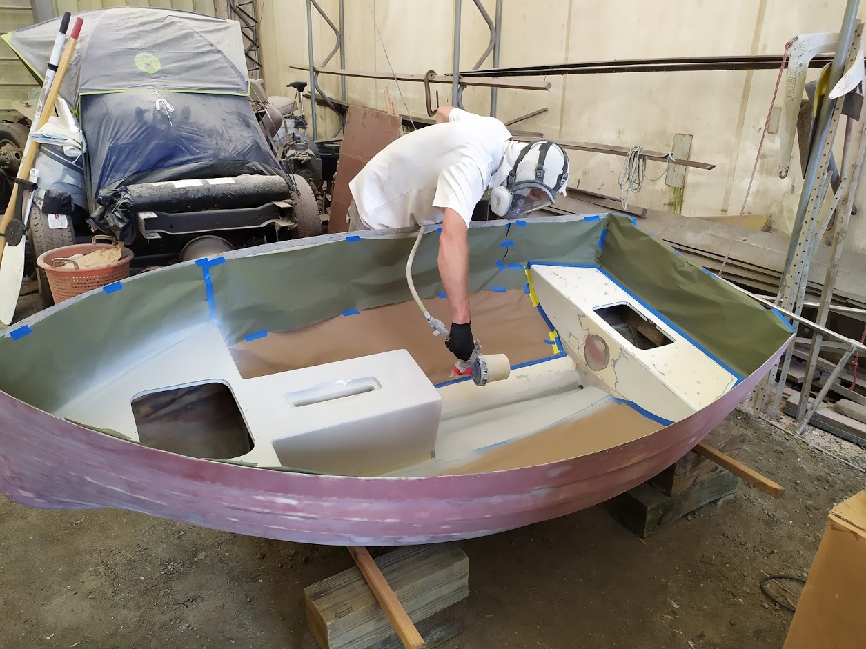 The Tuff Stuff primer went on like glass, then sanded perfectly. When it was time to paint the top coat, we were ready, and the dinghy looked perfect.