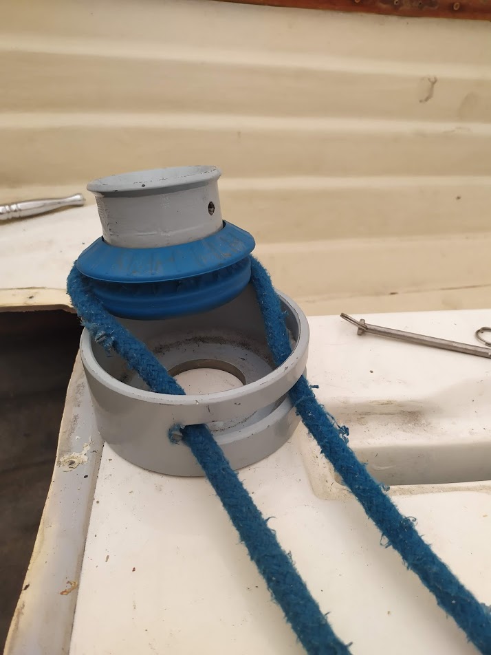 Hello. I was lucky to find my own Fatty Knees sailing dinghy. It is quite old, had new gelcoat and interior paint done about 8 years ago, then put in storage. It sails great, but I have a few issues. First is water in the forward compartment. It seems to be coming from the centerboard trunk. I dont see any cracks or other places it could be entering. Any ideas on how to get in there and repair? I have quite a bit of experience with composite airplanes and so am OK with cutting and replacing foam, doing layups, sanding, etc. Second – I love your furling system. Can you share the components you used and any other instructions on making this? Do you still have battens in the sail?