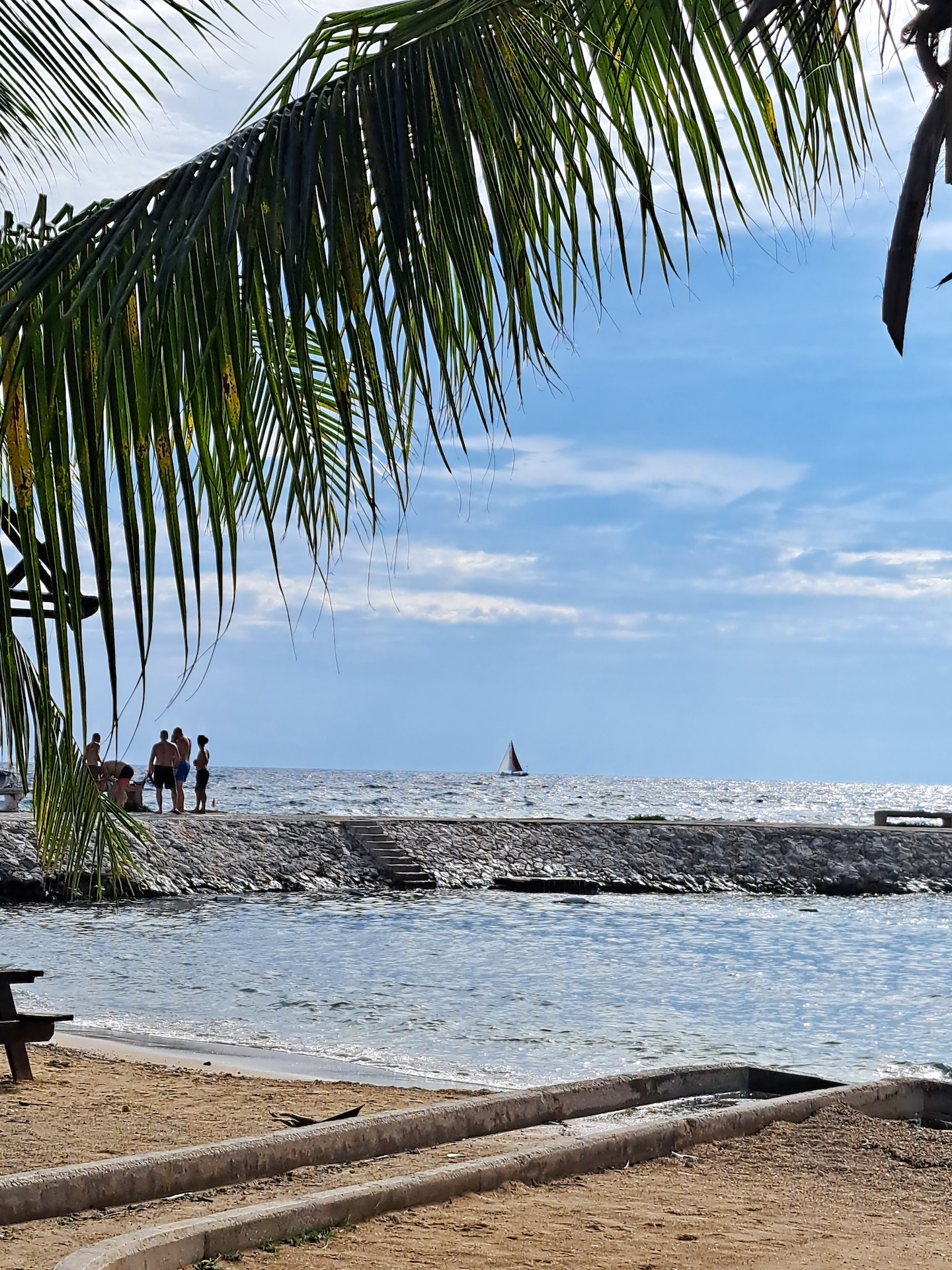 Christina and I then raced down to the water edge to watch Prism sail down the coast towards Spanish Waters. It was only because we had things to do that I was able to pull away from watching my beautiful boat sailing along. Provisions were needed badly as Prism was empty. We headed to the market closest to the anchorage and stocked up on some of the essentials.