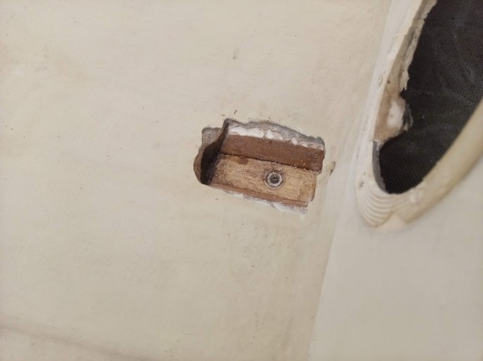 Oh, and where we added the locker access, we painted the inside of those lockers with Tile Clad- HS, which is the same paint we used to paint Prism’s lazarette, fridge, and the anchor locker too
